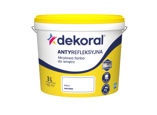 Akrylowa farba do wnętrz ANTYREFLEKSYJNA Śnieżnobiała 3 l Dekoral