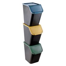 Zestaw 3 x 25 l czarnych pojemników bez uchwytów do segregacji odpadów z pokrywą kolorową niebieska/zielona/żółta Bini
