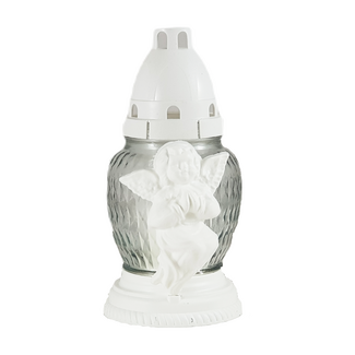 Znicz szklany Z 01 aniołek 18 x 9 cm 10 h 35 g biały