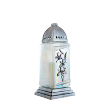 Znicz szklany lilie 34 x 14 cm 45 h srebrny