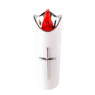 Świeca LED Rico z krzyżem 15 cm biało-srebrny