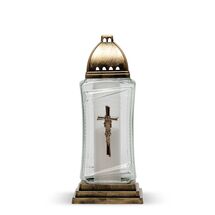 Znicz szklany z aplikacją krzyż 21,5 x 31 cm złoty