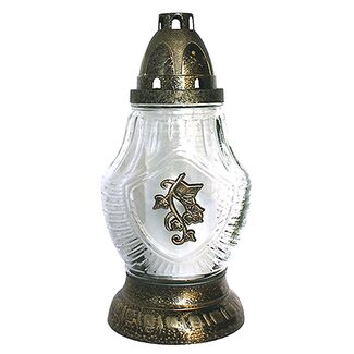 Znicz szklany Z-65/S krzyż 15 x 33 cm 60 h 190 g srebrny