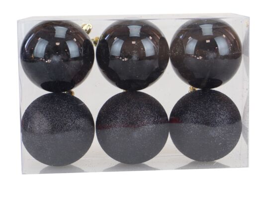 Bombka plastikowa czarna połysk/brokat 7 cm 6 sztuk