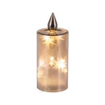 - Szklane latarenki z dekoracjami z gwiazdek i innych świątecznych wzorów.