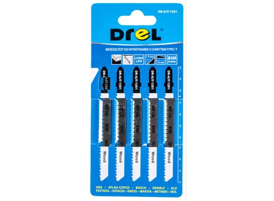 - >Brzeszczot do wyrzynarek z chwytem typu "T" drewno 75 mm zestaw 5 szt. Drel