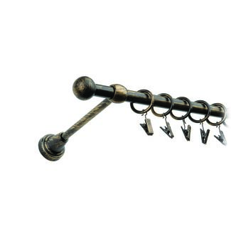 Karnisz pojedynczy motyw kuty Ø16, 220 cm czarno-złoty kulka