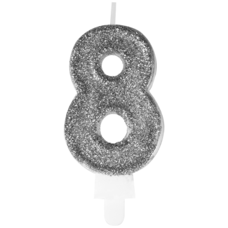 Świeczka premium cyfra 8 srebrny
