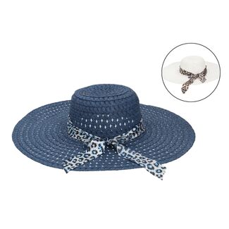 Kapelusz z wstążką śr. 45 cm biały/niebieski