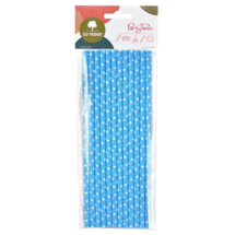 Słomka papierowa niebieska w białe kropki 12 sztuk