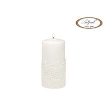 Świeca pieńkowa 15 x 7 cm koronka V lakier biała