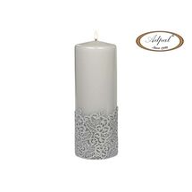 Świeca pieńkowa 20 x 7 cm koronka V jasny lakier popiel