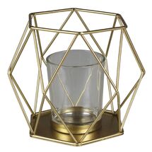 Świecznik metalowy szprosowy ze szklanym wkładem 16 x 16 x 28 cm złoty