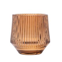 Świecznik szklany prążkowany 7 x 7 x 8 cm brązowy