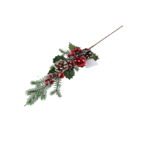 Gałązka dekoracyjna z szyszkami jarzębiną i bombkami oszroniona 72 cm
