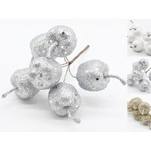 Pik z brokatowymi jabłkami 6 sztuk srebrny / złoty / biały
