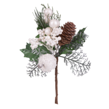 Stroik świąteczny z ośnieżonymi szyszkami i ostrokrzewem 32 cm