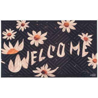 Wycieraczka materiałowa Welcome w kwiaty 45 x 75 cm czarny
