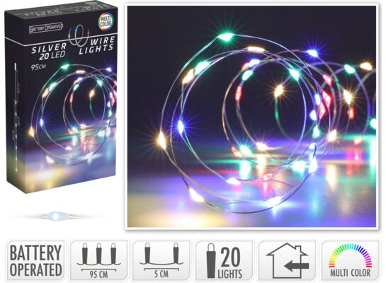 Drut srebrny 20 LED 95 cm multikolor