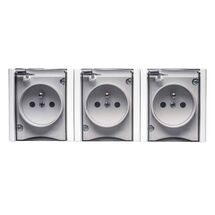 Gniazdo potrójne bravo z uziemieniem białe dymne wieczko natynkowe GNH-3BZ IP54 bravo