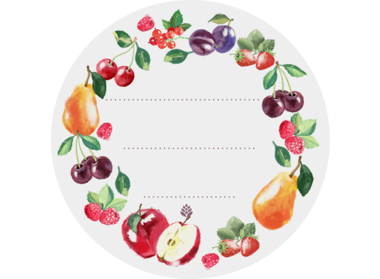 Etykieta okrągła owoce fi 5 cm 20 sztuk