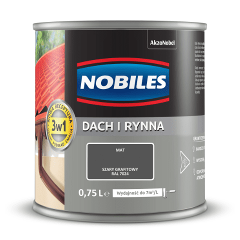 - >Farba akrylowa Dach i Rynna Szary Grafitowy RAL 7024 0,75 l Nobiles