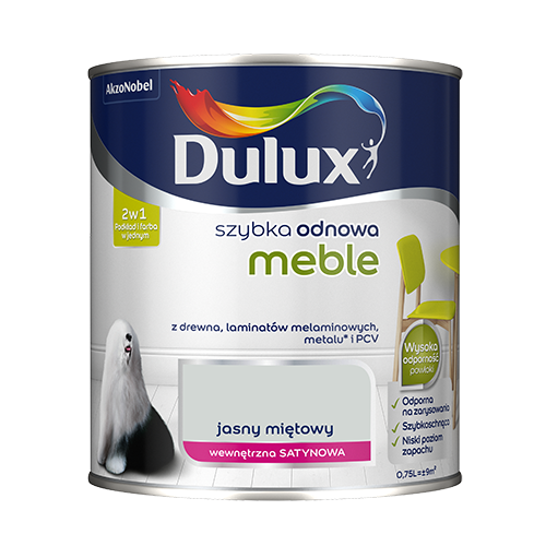- >Farba akrylowa Dulux Szybka Odnowa Meble 0,75 l – jasny miętowy
