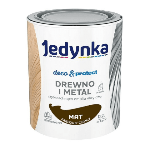 - >Farba akrylowa Jedynka Deco&Protect Drewno i Metal mat Brązowy Ciemny 0,7 l