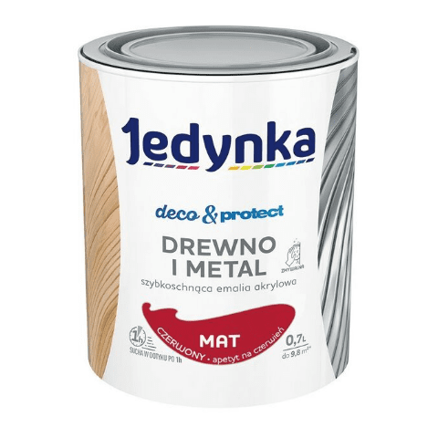 - >Farba akrylowa Jedynka Deco&Protect Drewno i Metal mat Czerwony 0,7 l