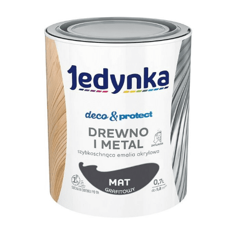 - >Farba akrylowa Jedynka Deco&Protect Drewno i Metal mat Grafitowy 0,7 l