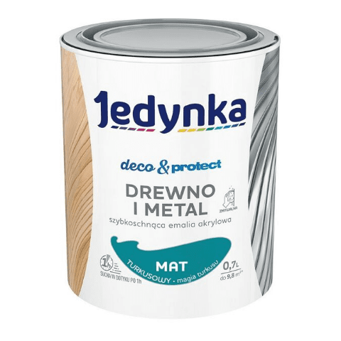 - >Farba akrylowa Jedynka Deco&Protect Drewno i Metal mat Turkusowy 0,7 l