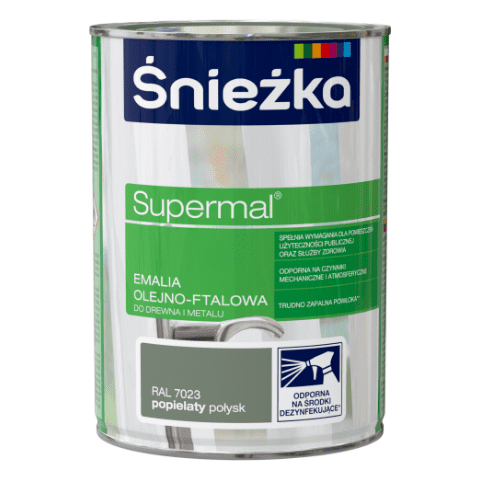 - >Farba emaliowa olejno-ftalowa Supermal popielaty 0,8 l Śnieżka
