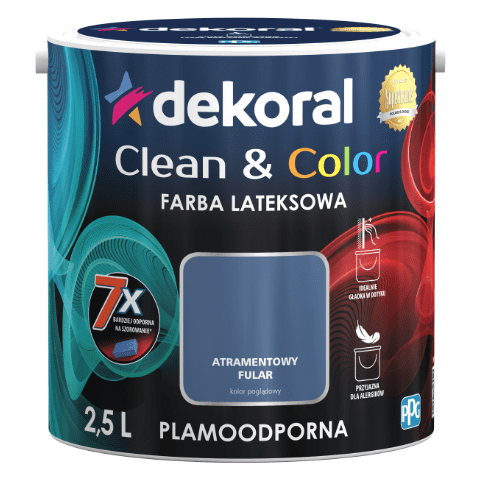 - >Farba lateksowa Clean&Color Atramentowy Fular 2,5 l Dekoral