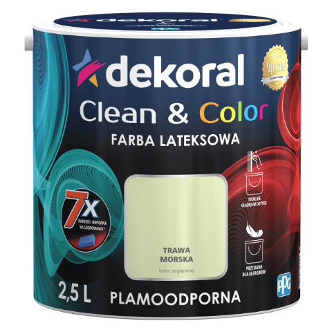 - >Farba lateksowa Clean&Color Trawa Morska 2,5 l Dekoral