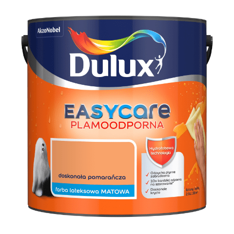 - >Farba lateksowa EasyCare Plamoodporna Doskonała Pomarańcza 2,5 l Dulux
