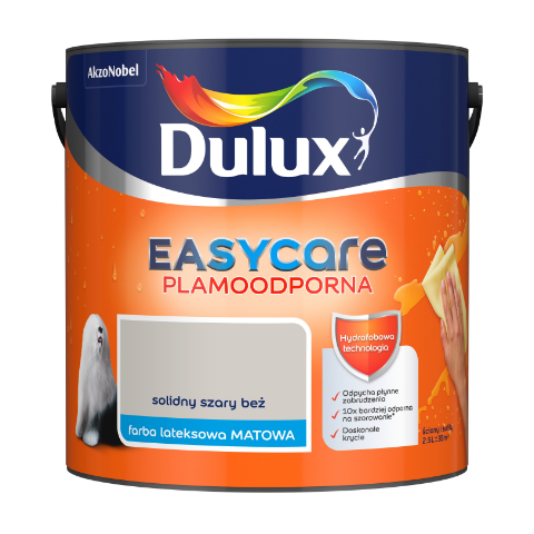 - >Farba lateksowa EasyCare Plamoodporna Solidny Szary Beż 2,5 l Dulux