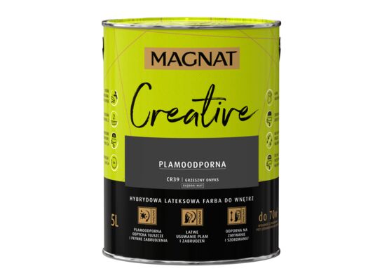 MAGNAT CREATIVE to farba hybrydowa, łącząca ze sobą dwie właściwości: odporność na płynne zabrudzenia (hydrofobowość ) oraz odporność na tłuszcze (oleofobowość).