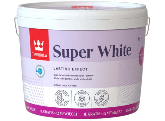 - >Farba lateksowa Tikkurila Super White Biała 10 l +10% GRATIS