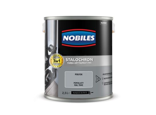 Nobiles Stalochron to farba antykorozyjna, przeznaczona do ochronno-dekoracyjnego malowania powierzchni stalowych i żeliwnych, wewnątrz i na zewnątrz pomieszczeń. Tworzy wysokiej jakości elastyczne powłoki odporne na działanie wszystkich czynników atmosferycznych, gwarantujące długoletnie i profesjonalne zabezpieczenie malowanej powierzchni. Nie wymaga stosowania farb podkładowych i może być nakładana bezpośrednio na nowe powierzchnie metalowe, jak również na miejsca pokryte rdzą. Bardzo dobrze przyczepna do podłoża, trwale zabezpieczająca antykorozyjnie.