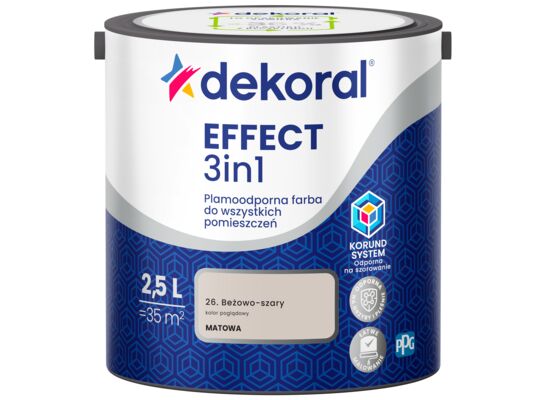 - >Farba plamoodporna do wszystkich pomieszczeń EFFECT 3in1 Beżowo-szary 2,5 l Dekoral