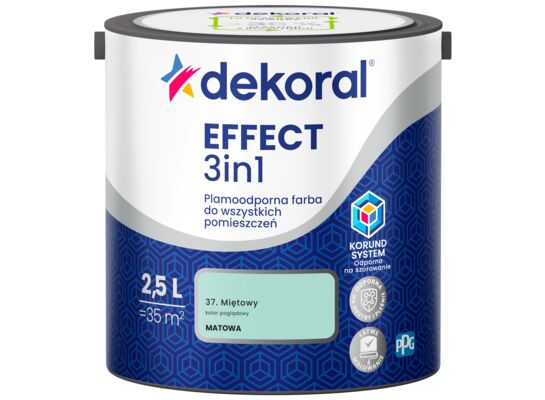 - >Farba plamoodporna do wszystkich pomieszczeń EFFECT 3in1 Miętowy 2,5 l Dekoral