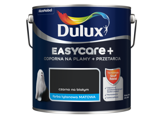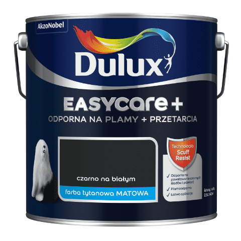 - >Farba tytanowa Dulux EasyCare+ Plamy+Przetarcia Czarno na Białym 2,5 l