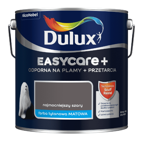 - >Farba tytanowa Dulux EasyCare+ Plamy+Przetarcia Najmocniejszy Szary 2,5 l