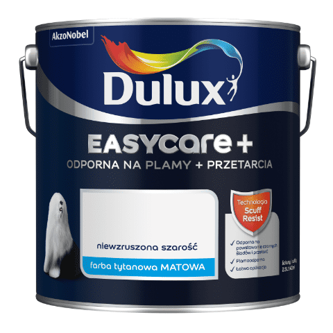 - >Farba tytanowa Dulux EasyCare+ Plamy+Przetarcia Niewzruszona Szarość 2,5 l