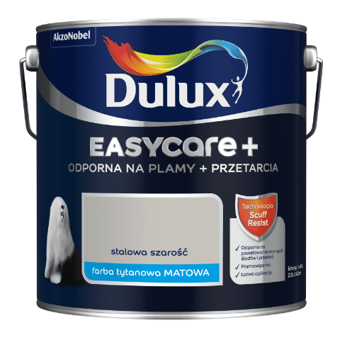 - >Farba tytanowa Dulux EasyCare+ Plamy+Przetarcia Stalowa Szarość 2,5 l