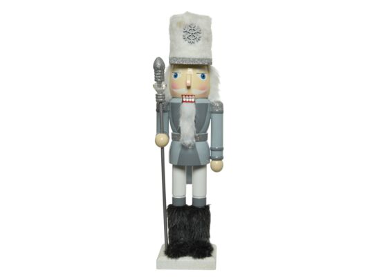 Figurka drewniana dziadek do orzechów 11 x 8,5 x 38 cm szary