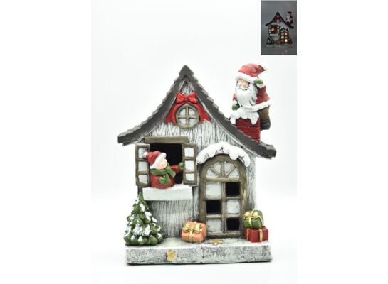 - >Figurka LED domek z świętym mikołajem 38,5 x 33 cm