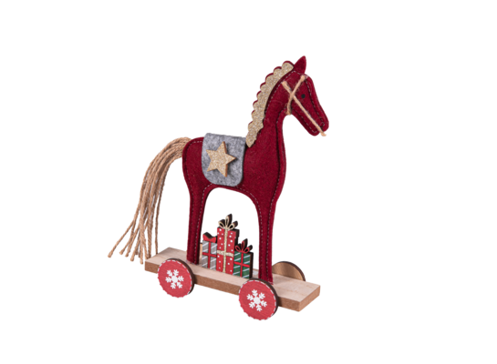 Figurka świąteczna konik 22 x 32,5 cm bordowy