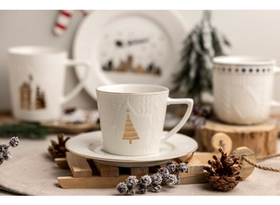 Filiżanka ze spodkiem golden christmas tree 210 ml 6 sztuk