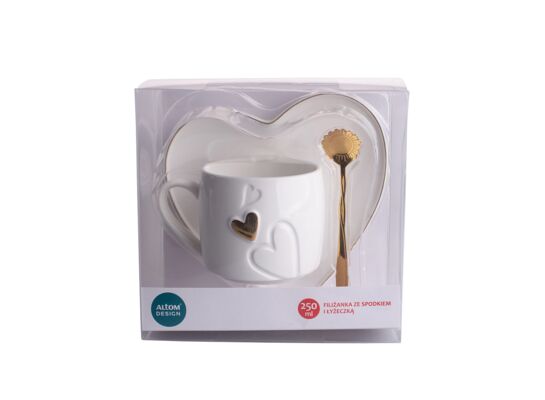 - Filiżanka ze spodkiem w kształcie serca i łyżeczką 250 ml